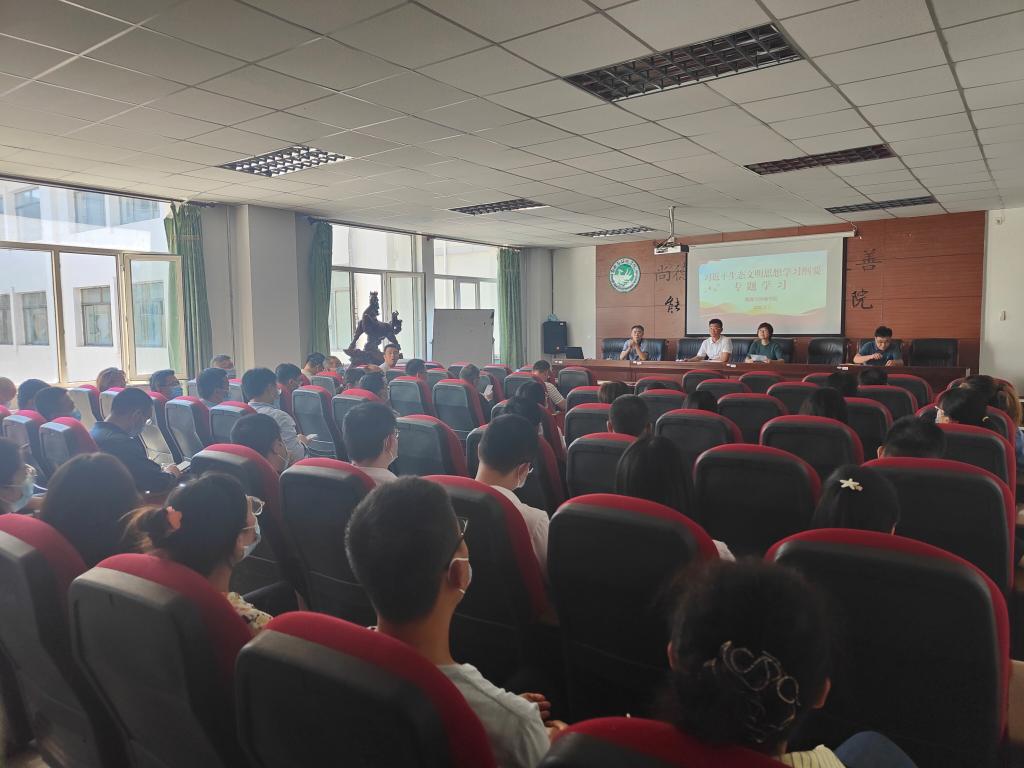 为深入学习贯彻习近平生态文明思想,深刻认识生态文明建设的重大意义,让习近平生态文明思想入脑入心,指导实践。9月1日下午,学院组织全体教职工专题学习《习近平生态文明思想学习纲要》, 党委书记张鑫同志主持学习。