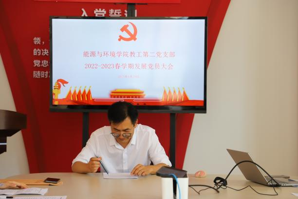 为深入学习贯彻党的二十大精神,做好党员发展工作,加强党员队伍建设,壮大教工党支部力量,6月20日下午,教工第二党支部在秋实新楼419会议室召开党员发展大会,本次会议主要讨论庞赟佶同志的发展事宜。会议由教工党支部书记何丽娟主持,党委副书记吴晅及教工二支部党员参加。
