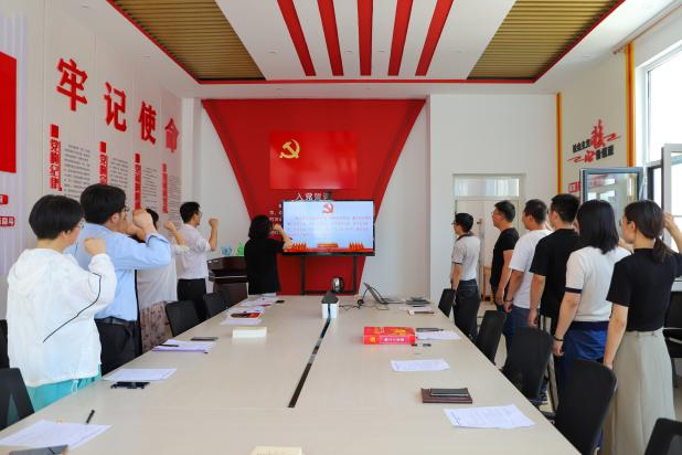 大会严格按照党员发展程序进行,发展对象庞赟佶汇报入党动机、工作表现等情况,入党介绍人结合发展对象在培养考察期的思想动态、工作表现发表意见,支部书记代表支委会向大会汇报发展对象政治审查情况。经现场党员充分讨论,无记名投票等环节,一致同意接受庞赟佶为中共预备党员。党委副书记吴晅为新发展党员佩戴党徽,全体党员在支部书记何丽娟的带领下进行庄严宣誓。庞赟佶同志进行表态发言,表示今后将按照《中国共产党章程》规定严格要求自己,不断加强党性修养,积极工作,用实际行动践行自己的誓言。