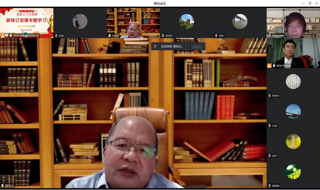 128日下午,能源与环境学院理论中心组集中学习新修订的《中国共产党章程》,学院党委书记张鑫主持,学院党委委员、各党支部书记参会,校党委委员、副校长屈忠义旁听指导本次学习活动。本次学习会采取线上腾讯会议形式开展。