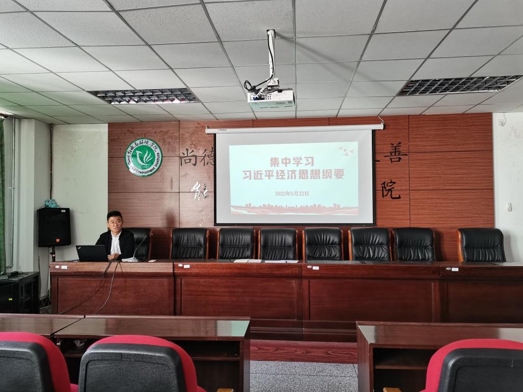 为了深入学习贯彻习近平新时代中国特色社会主义思想,让全体教职工更加系统地学习掌握习近平经济思想,9月22日学院组织全体教职工在秋实楼B405集体学习《习近平经济思想学习纲要》