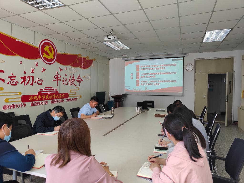 本次培训采取“线上+线下”的方式进行,与会人员共同观看了中央党校(国家行政学院)陈凯龙教授所做的“坚持和加强党对高等学校全面领导 建设高质量教育体系——《中国共产党普通高等学校基层组织工作条例》新修订解读”专题报告陈教授从修订和实施《中国共产党普通高等学校基层组织工作条例》的重大意义《中国共产党普通高等学校基层组织工作条例》的主要内容贯彻落实《中国共产党普通高等学校基层组织工作条例》的思路三个方面进行了讲解。