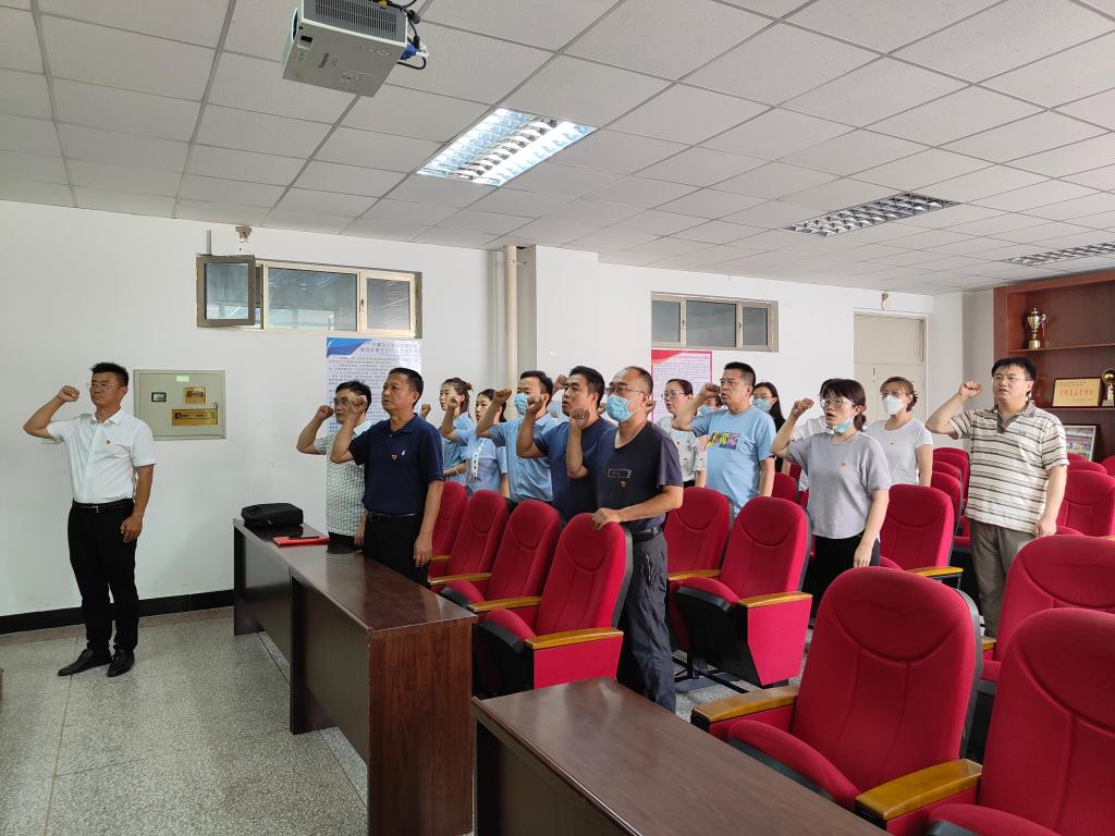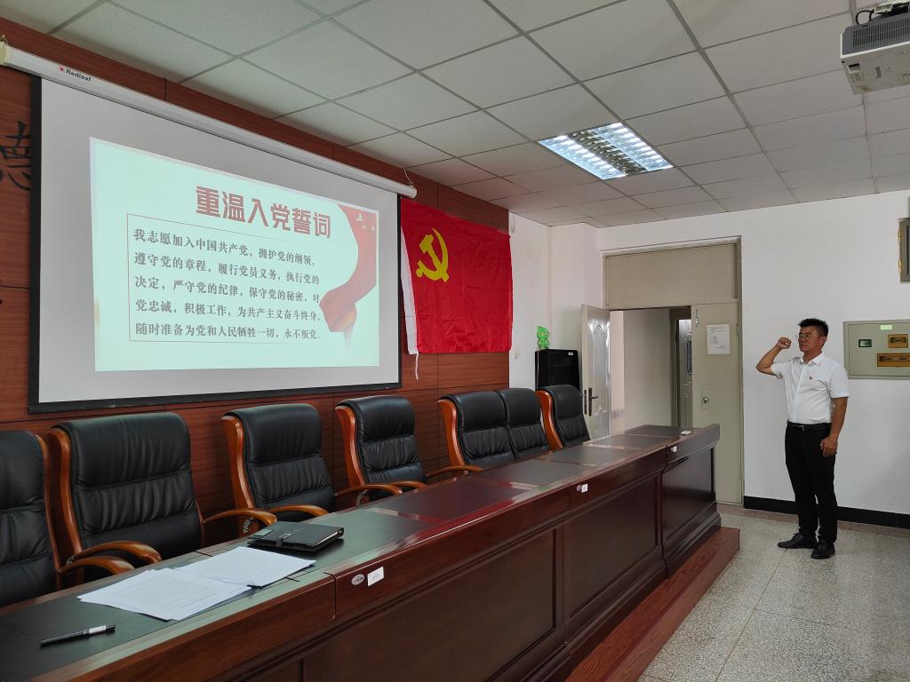 活动首先组织全体党员重温入党誓词。在张鑫书记的带领下,全体党员列队整齐面向党旗,高举右拳,庄严宣誓。庄重神圣的誓词,铿锵有力的宣誓声,表达了全体与会同志坚定政治信念和时刻不忘初心、矢志永远奋斗的坚定决心。