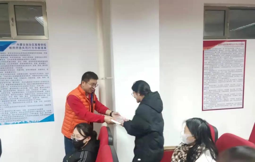 学生第三党支部书记古琛为每一位考研学子分发了“暖心福袋”并详细询问了考生复习的进度及报考院校,嘱咐学生一定要注意保暖,劳逸结合,要做好考前准备,调整心态,用良好的精神风貌参加考试,预祝所有同学都能成功上岸。