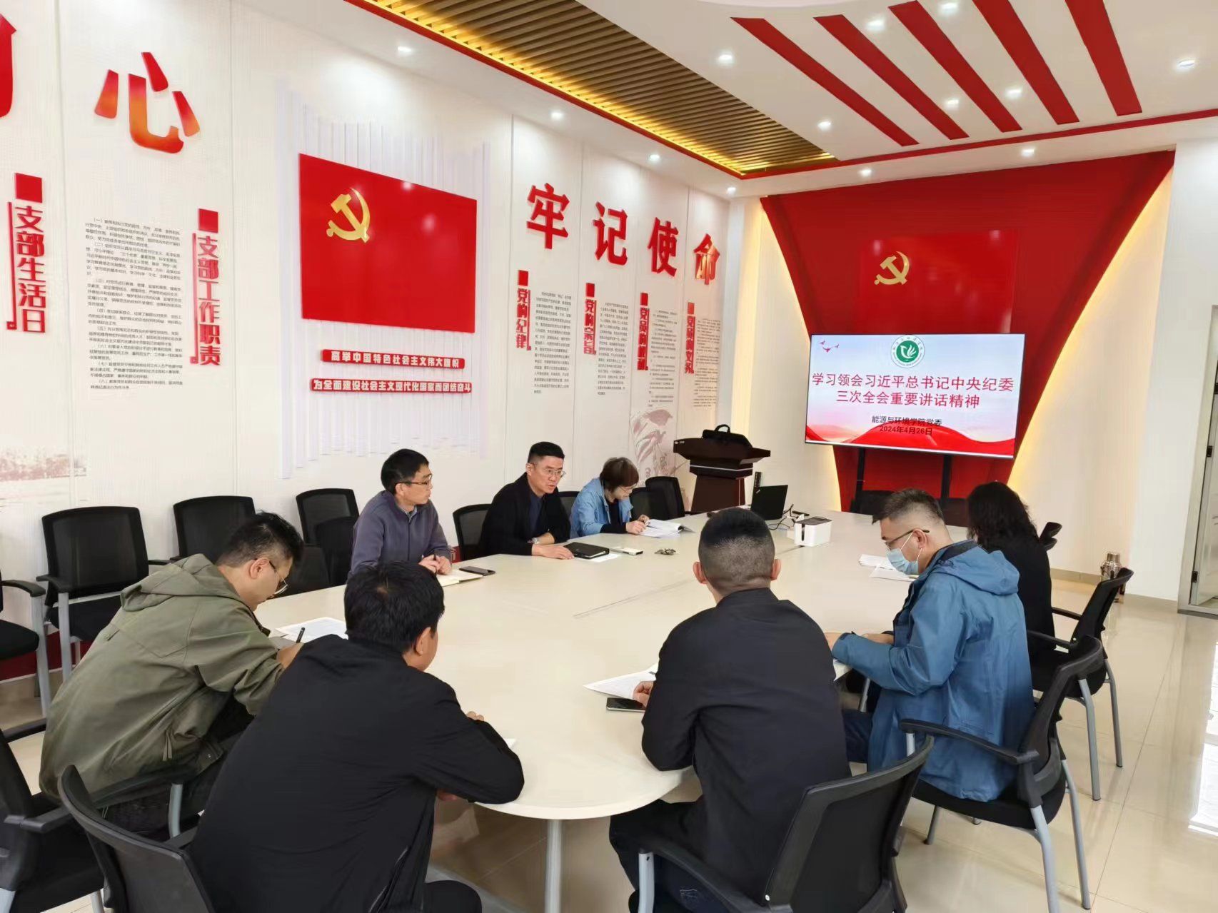 4月26日上午,在秋实北楼419会议室,学院党委理论学习中心组开展2024年度第5次集体学习,学习领会习近平总书记中央纪委三次全会重要讲话精神,扎实推进党纪学习教育。学院党委书记张鑫主持会议,党委委员、支部书记、系主任参加学习。