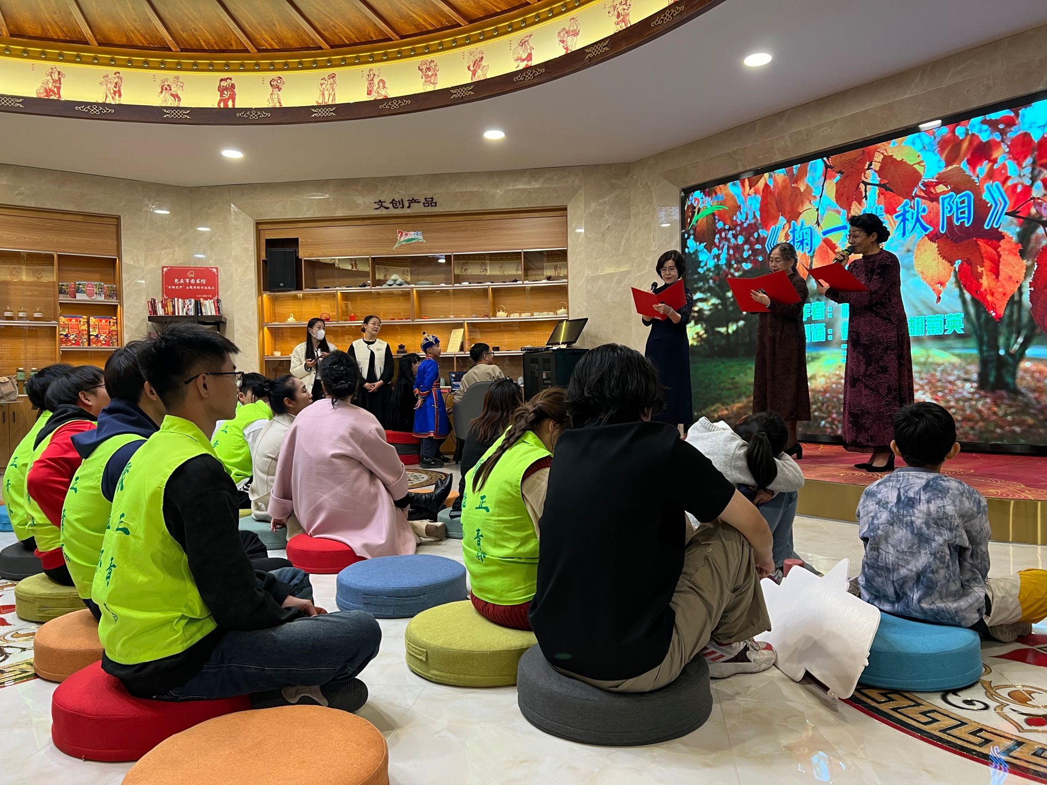 随后,学生第一党支部的党员以及积极分子们聆听了来自包头市图书馆、作家协会、老年大学等各位经验丰富的朗诵者、演唱者的朗诵以及演唱,更加深切的感受到了民族团结的温暖力量,也通过深情投入的朗诵,切身地感受到民族像石榴籽一样紧紧抱在一起,共同书写民族团结美好篇章的完美寓意!