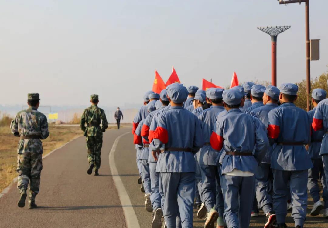 10月23日清晨7:30整,青马班全体学员到达南海红色研学基地后,在教练员的组织下集体换上了光荣的红军装,随即进行了开营仪式。仪式上,教练员祝贺全体学员能够进入“青马工程”培训班学习磨炼并宣告“请党放心·强国有我”两天一夜红色研学、素质拓展、行军拉练活动正式开始。