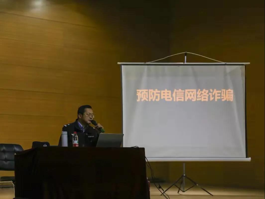 为切实增强我院学生的安全意识,提高学生的安全防范技能,提高对网络诈骗的关注度与警惕性,10月12日,我院特邀请包头市公安局教育培训支队警务理论教研室主任艾广勇同志为2021级新生开展了防范电信网络诈骗宣传教育讲座。