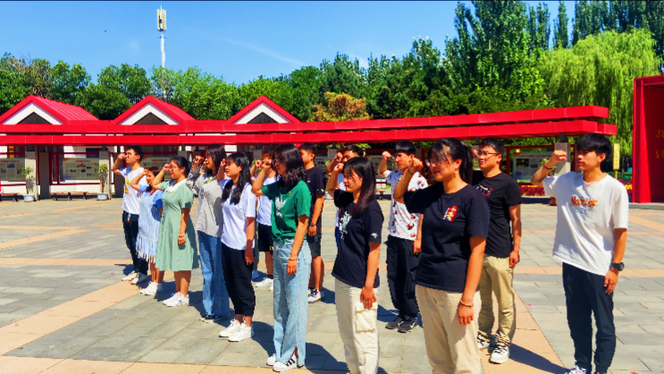 认真观看党史长廊后,党员们走进誓言广场。在鲜红的党旗面前,每一个党员都怀着激动与敬仰的心情重温入党誓词。