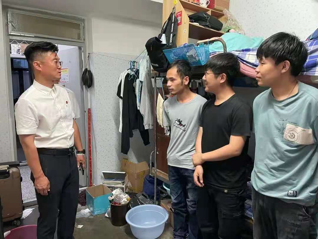 随着毕业季的到来,我院2021届毕业生已经陆续办理毕业和离校手续。6月27日晚,学院党委书记张鑫带领全体辅导员,深入我院学生宿舍,看望慰问毕业年级学生,对学生就业和生活进行了关心和慰问。