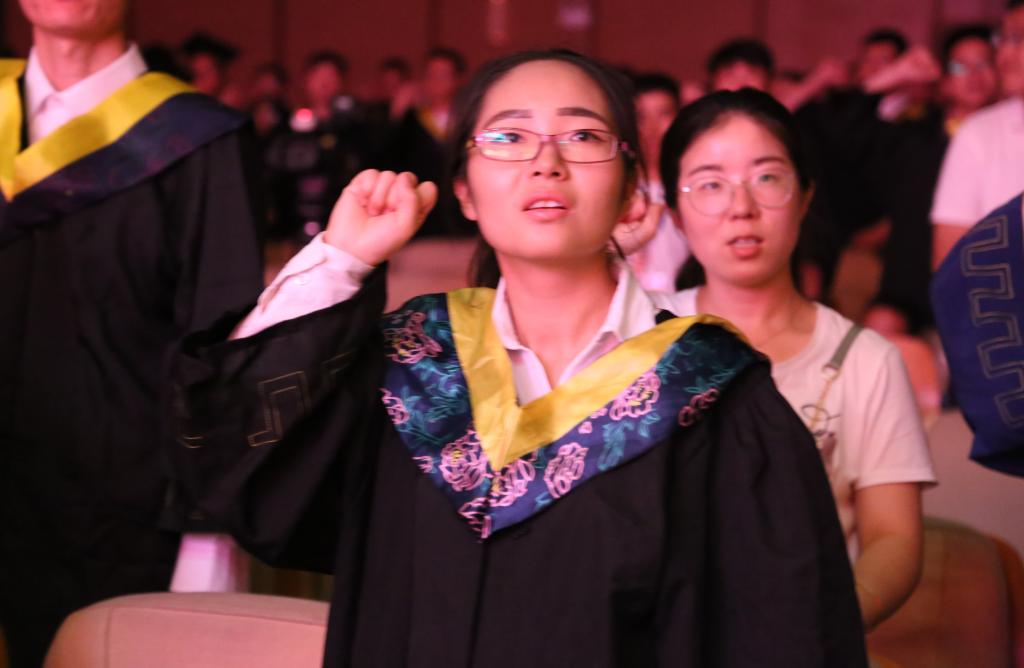 典礼最后,硕士毕业生代表齐璐带领全体毕业生庄严宣誓,声声宣誓,激荡人心,让每一位在场的观众都为之动容。