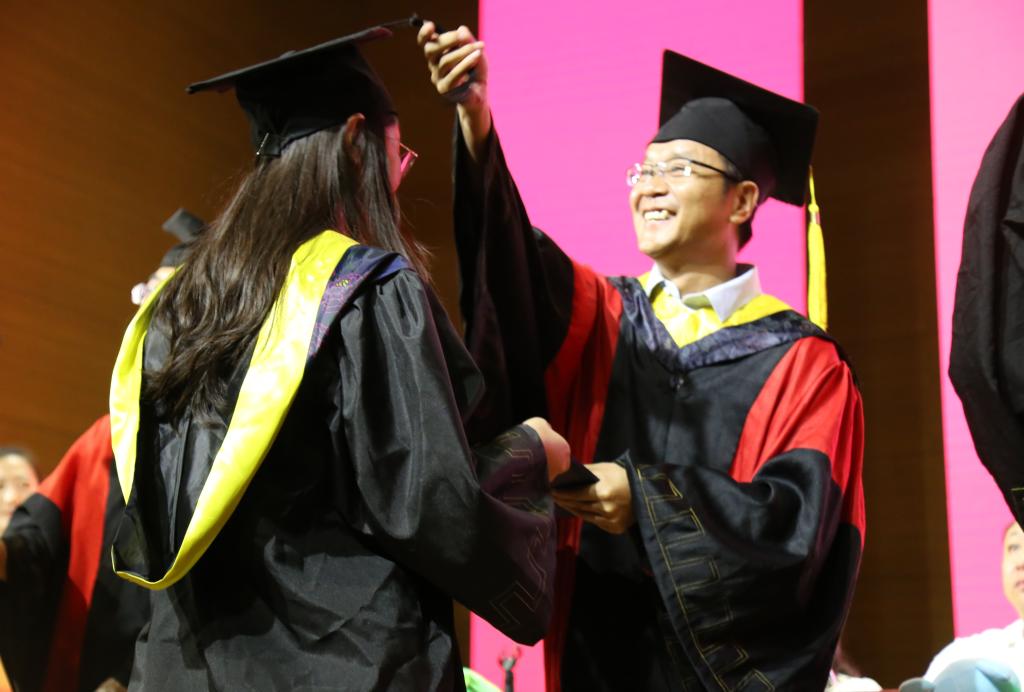 典礼现场,伴着ok138cn太阳集团529青年主题曲《展翅高飞》的激扬旋律,在全体师生的共同见证下,校党委副书记、校长安胜利教授与所有导师团成员一同,为毕业生们扶正流苏,授予学位。庄重的拨穗、颁证仪式表示能环学子们学有所成,也凝聚着母校对毕业生们的殷切期望。