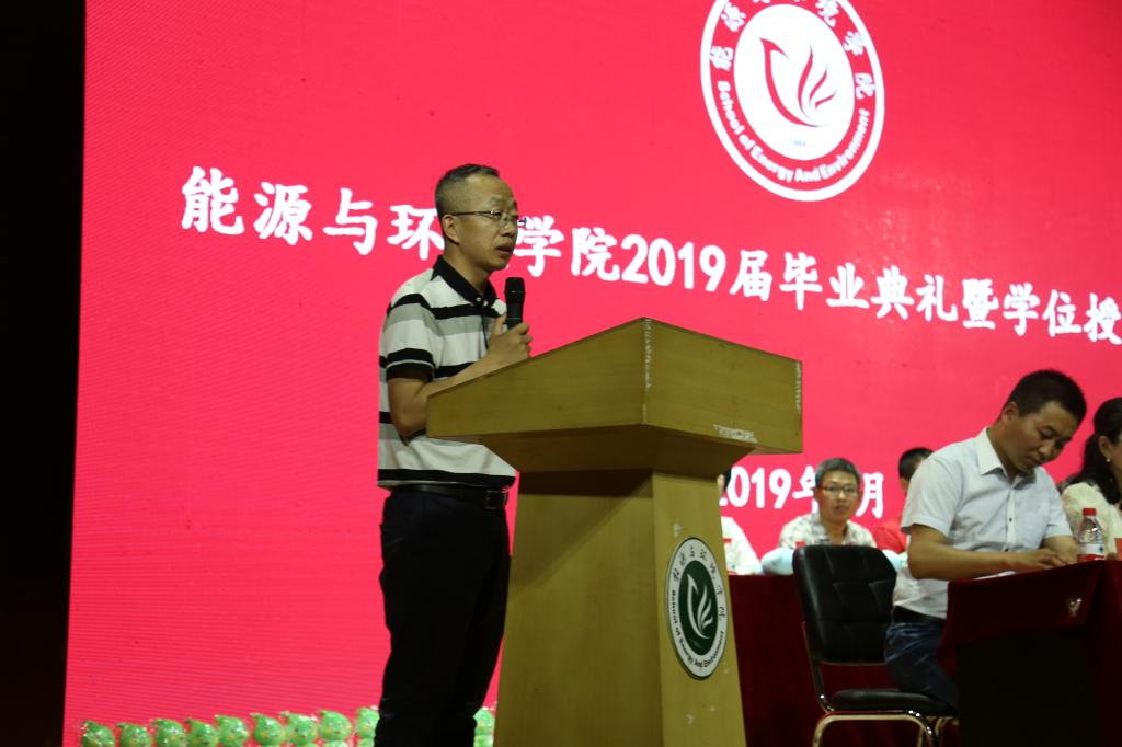 随后,校党委副书记、校长安胜利教授深情寄语毕业生。他代表学校向各位毕业生表示最热烈的祝贺。他希望同学们能够永远保持一颗进取之心,脚踏实地,追求卓越,在中国特色社会主义事业的历史进程中,在人类文明进步的伟大实践中,成就自己的理想和事业。他希望同学们能够时刻坚守一份责任之心,甘于奉献,勇于担当。用自己的聪明才智为国家的强盛、为人民的幸福、为中华民族的振兴、为人类文明的进步作出自己的贡献。他希望同学们能够持久拥有一颗豁达之心,热爱生活,宽容自信。要懂得珍爱时间和生命,珍爱工作和生活,珍爱亲人和朋友,珍爱我们的人民和祖国,以宽容的性情对待人生的失落与坎坷,始终自信地去成就有意义、有价值、有创造的未来。他祝愿同学们能唱响新时代的毕业歌,做好今日中国平凡之事,成就未来中华栋梁之材。