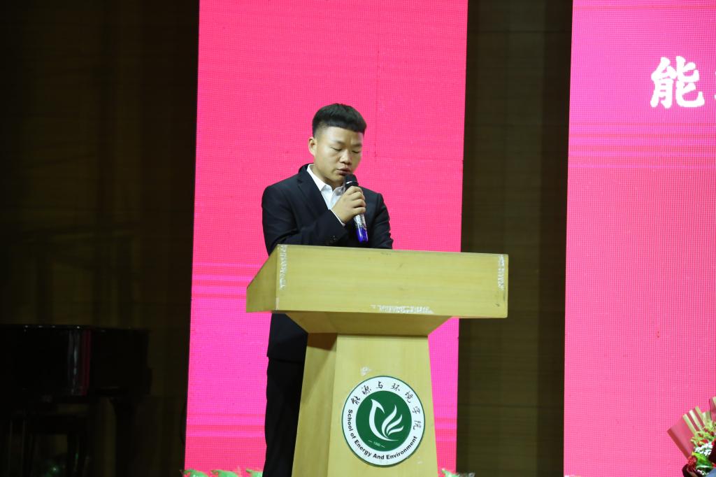 建环15-2班李港辉代表所有毕业生发言。发言中,他与大家共同分享了自己的大学生活。他感谢母校给予自己选择的自由、尝试的勇气、广阔的视野、丰富的资源、温暖舒心的校园和回馈感恩的心。他对所有毕业生:“在即将踏上新的人生旅途的时候,我们一定要继续发扬百炼成钢的精神,脚踏实地,走出精彩人生。”