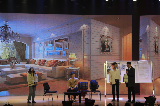 15能源张宇鑫带来的歌伴舞《亲爱的小孩》,为大家讲述了学院暑期“三下乡”社会实践直属队在青海省循化县开展公益支教的感动旅程;16环境赵伟平带来的小品《贾总的演讲》,展现了一个人突破自我、自信演说的蜕变故事;