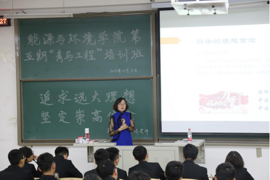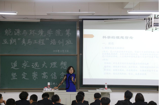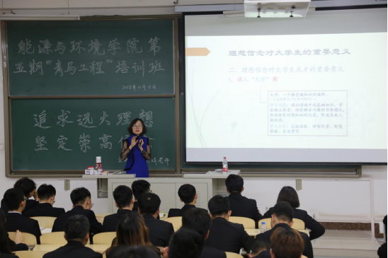 11月17日,能源与环境学院第五期“青马工程”培训班理论课程——《追求远大理想·坚定理想信念》主题讲座于逸夫楼G301顺利进行。能源与环境学院第五期“青马工程”培训班全体学员暨全体学生干部聆听了此次讲座。