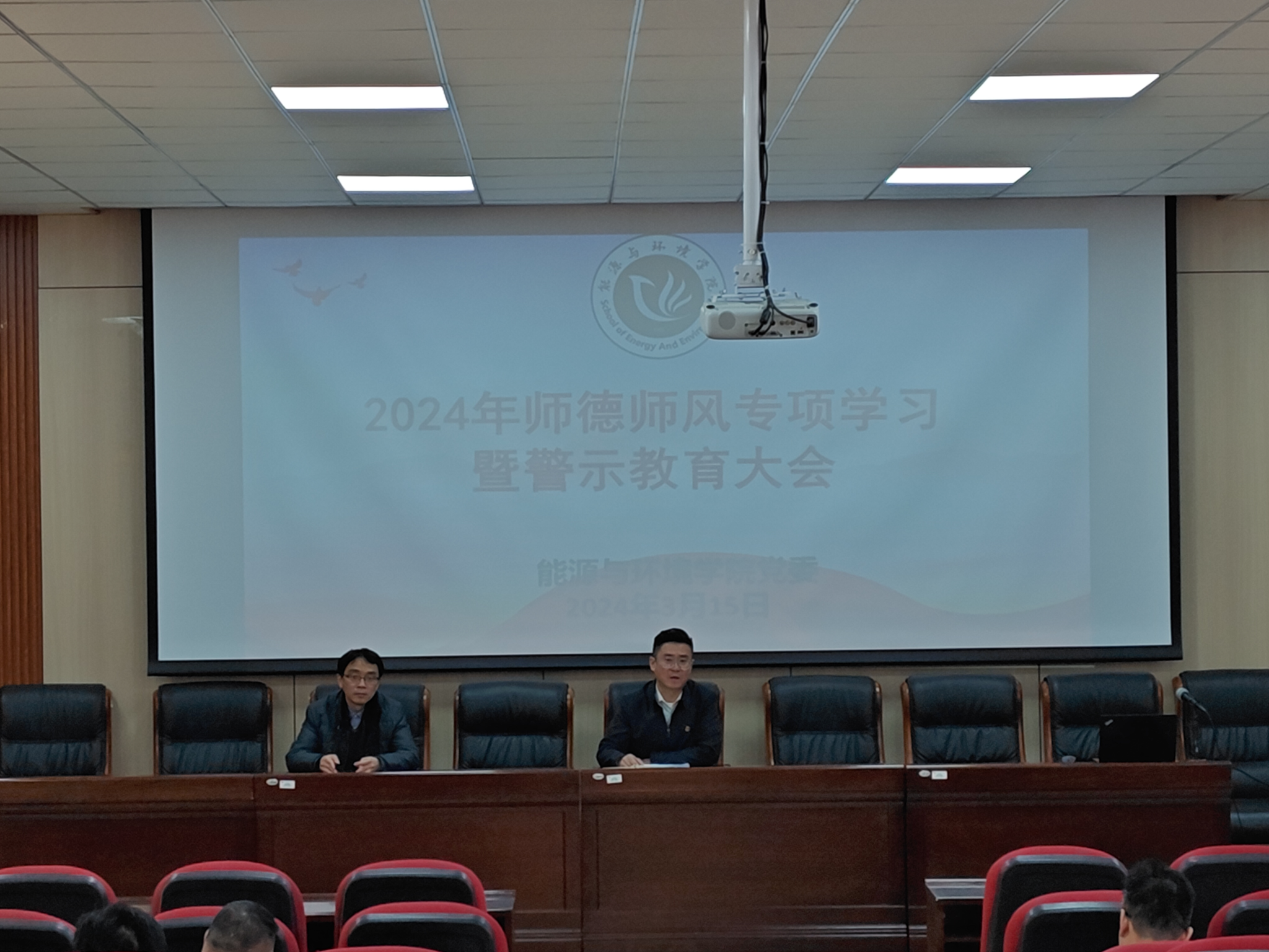 会议传达《关于进一步建立健全师德师风建设工作机制的通知》《教育部办公厅关于进一步压实高校师德师风建设主体责任的通知》《普通高等学校教师党建和思想政治工作质量标准(试行)》文件精神,传达3月7日学校2024年全面从严治党工作会议中关于加强师德师风、强化纪律和作风建设相关工作部署,宣读《ok138cn太阳集团529开展师德专题学习实施方案》,组织全体教职工重温《新时代高校教师职业行为十项准则》,结合教育部公开曝光违反教师职业行为十项准则典型案例开展政策解读和宣讲,集体学习《事业单位工作人员处分规定》,结合学校通报的几起因违纪违法被查处的案例,开展警示教育,用身边的事教育身边的人,以此拉开了学院2024年度系列师德师风教育专题的序曲。