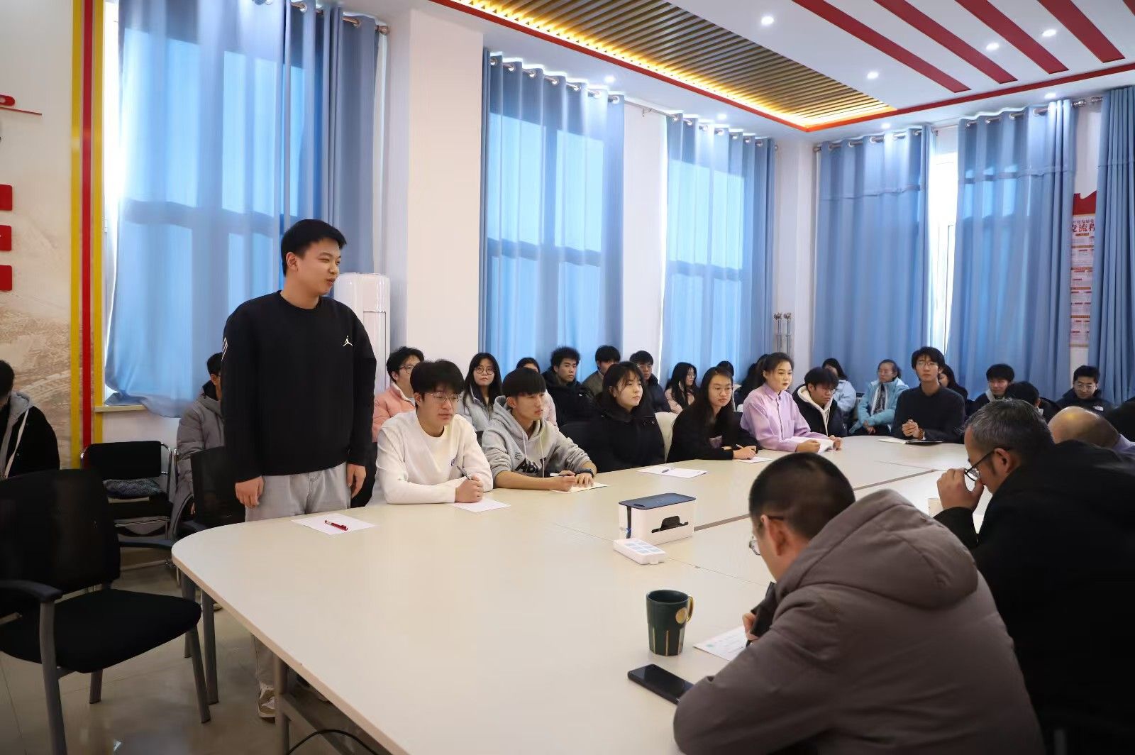 屈校长认真倾听同学们的发言,根据同学们的提问,详细分析了考研以及就业的动态与趋势,强调无论是考研还是就业,都应结合自身兴趣与优势,做好长远规划。