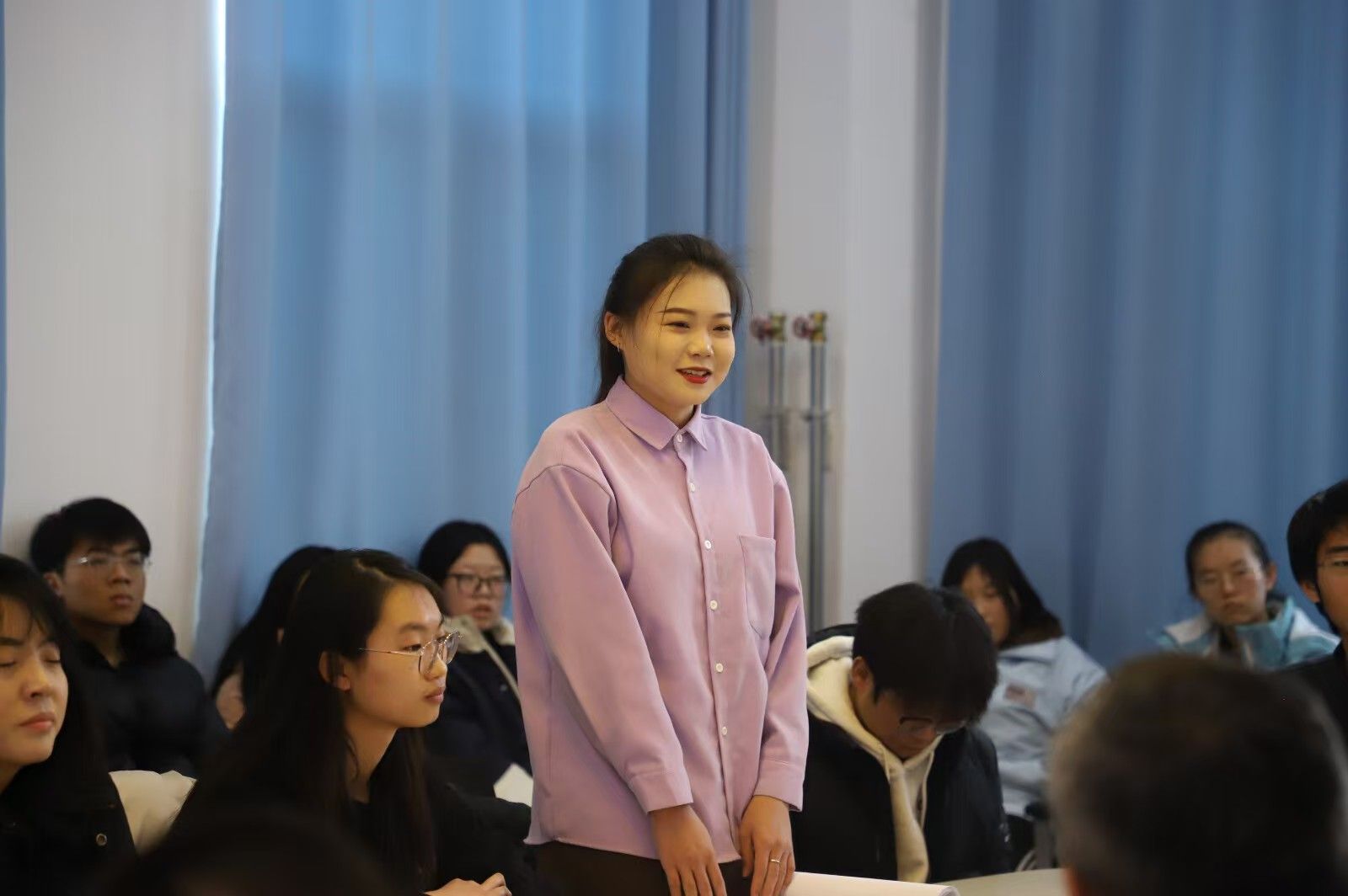 座谈会期间,屈校长让同学们畅所欲言,谈一谈个人经历、未来规划,聊一聊个人困惑,以及对学校、学院、专业发展的建议和意见。同学们结合自身的实际情况,从个人的职业发展出发,围绕考研还是就业、当前国家政策下就业机遇的把握、学习的静心之法以及女生就业难等问题与屈校长展开了交流。