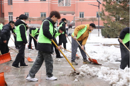 3月4日上午,能环学院百余名学生党员、团员及青年志愿者在学院团委的号召下,手持铁锹、扫帚等工具,奔赴教学楼、宿舍区、主干道等重点区域开展清雪行动。同学们分工协作、默契配合,经过数小时的奋战,校园主干道及师生高频通行区域被迅速打通,一条条“平安路”、“暖心路”在欢声笑语中逐渐显现。