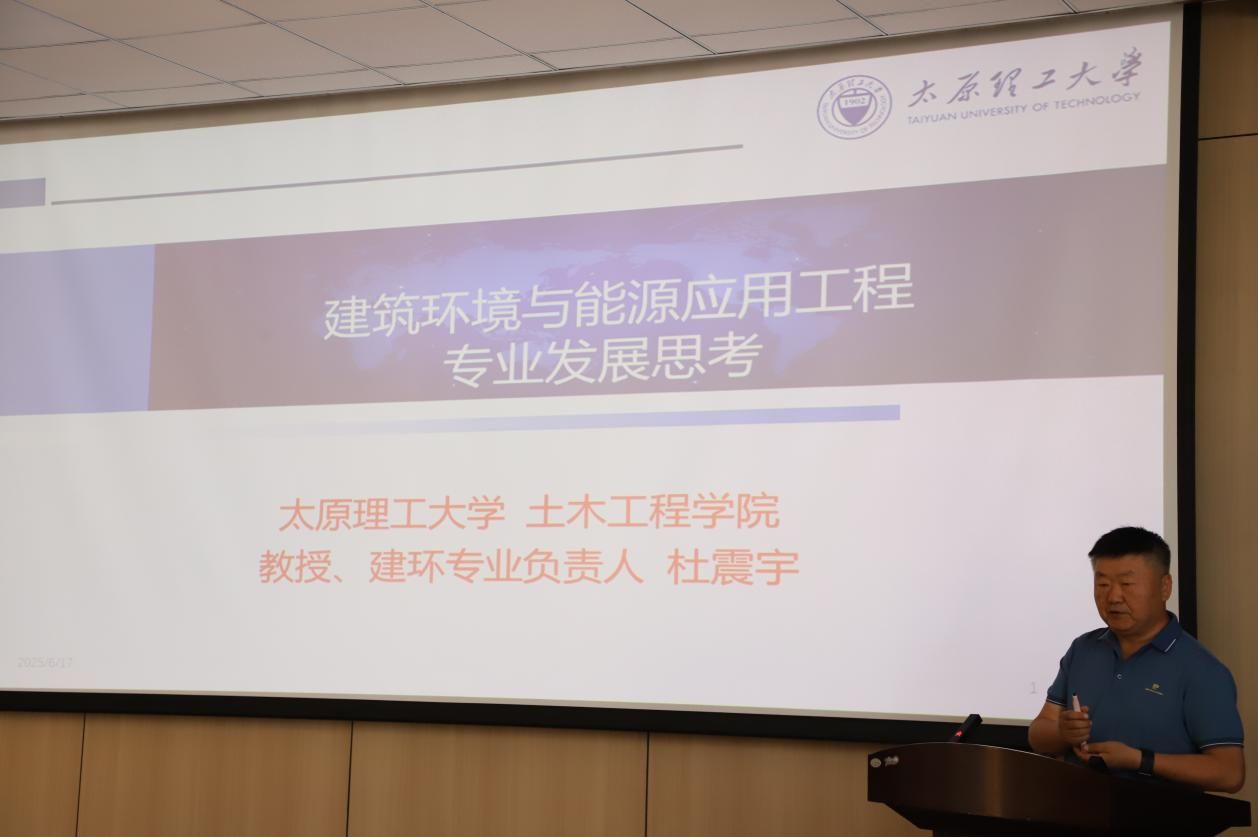 此次活动还特别邀请了全国高等学校土建学科建筑环境与能源应用工程专业教学指导分委会委员、中国勘察设计协会建筑环境与能源应用分会常务理事、太原理工大学土木工程学院建环专业负责人杜震宇教授。活动期间,杜教授围绕建环专业建设和发展,作了题为“建筑环境与能源应用工程专业发展思考”的专题报告,并和与会人员进行了广泛交流。会后,杜教授与学院领导和建环专业教师代表进行了座谈,就建环专业人才培养、专业发展和学科专业竞赛等方面作进一步交流指导。