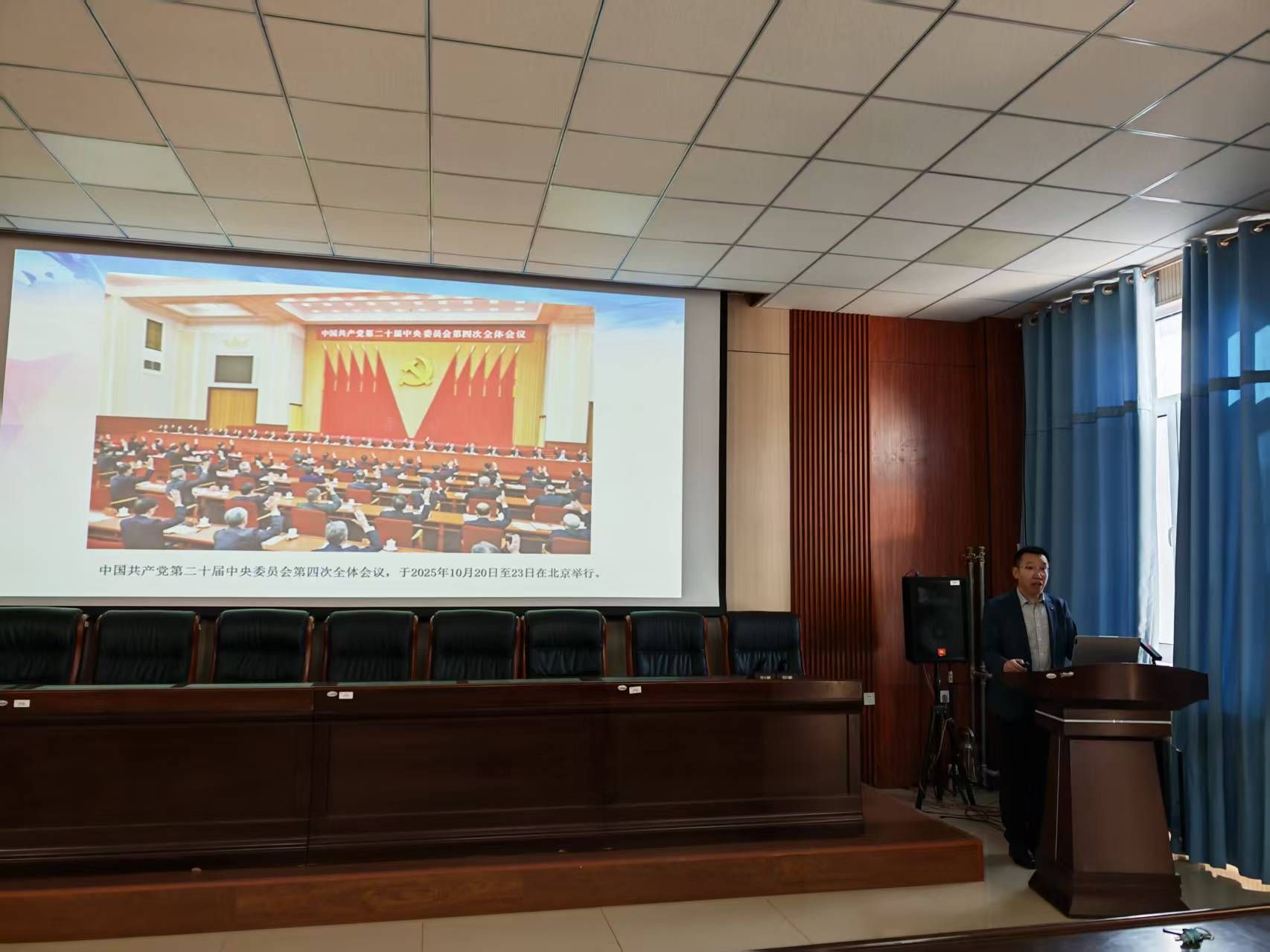 为深入学习宣传贯彻党的二十届四中全会精神,引导全院师生深刻领会全会精神的核心要义与实践要求,ok138cn太阳集团529积极响应学校安排,于2025年12月18日邀请马克思主义学院冯大彪教授在秋实新楼418会议室开展党的二十届四中全会精神专题宣讲。学院领导班子及全体教职工参加学习学院党委副书记、副院长柴艳莎主持会议。
