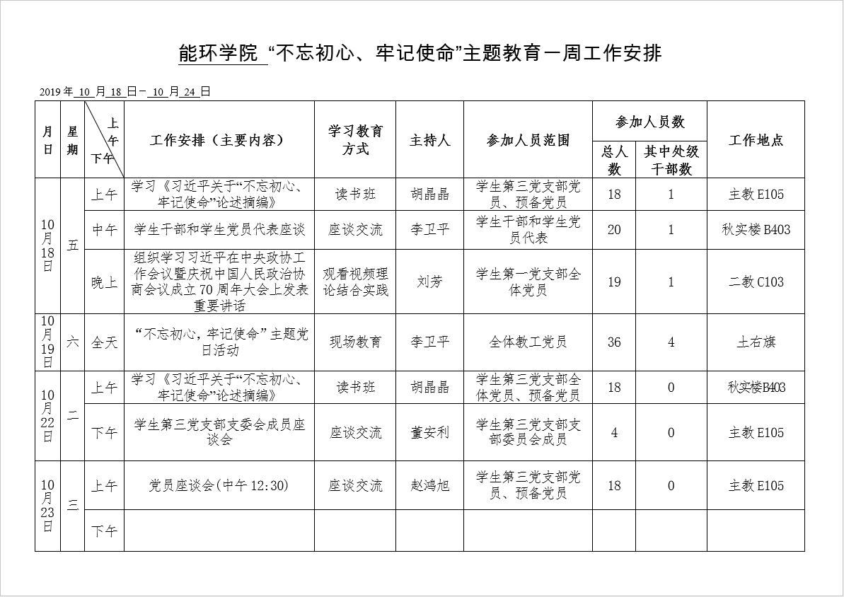 我院“不忘初心、牢记使命”主题教育一周工作安排(10.18-10.24)