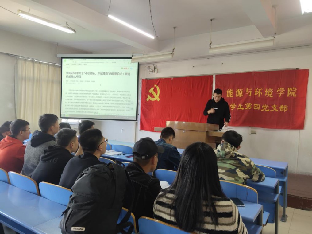 10月17日,学生第四党支部副书记袁帅,继续为支部全体党员及预备党员分享解读《习近平关于“不忘初心,牢记使命”论述摘编》的内容,让大家学习到了“不忘初心、牢记使命”,是激励中国人不断前进的根本动力,是不断巩固党的执政根基的现实需要,是答好新时代考卷的必然要求。