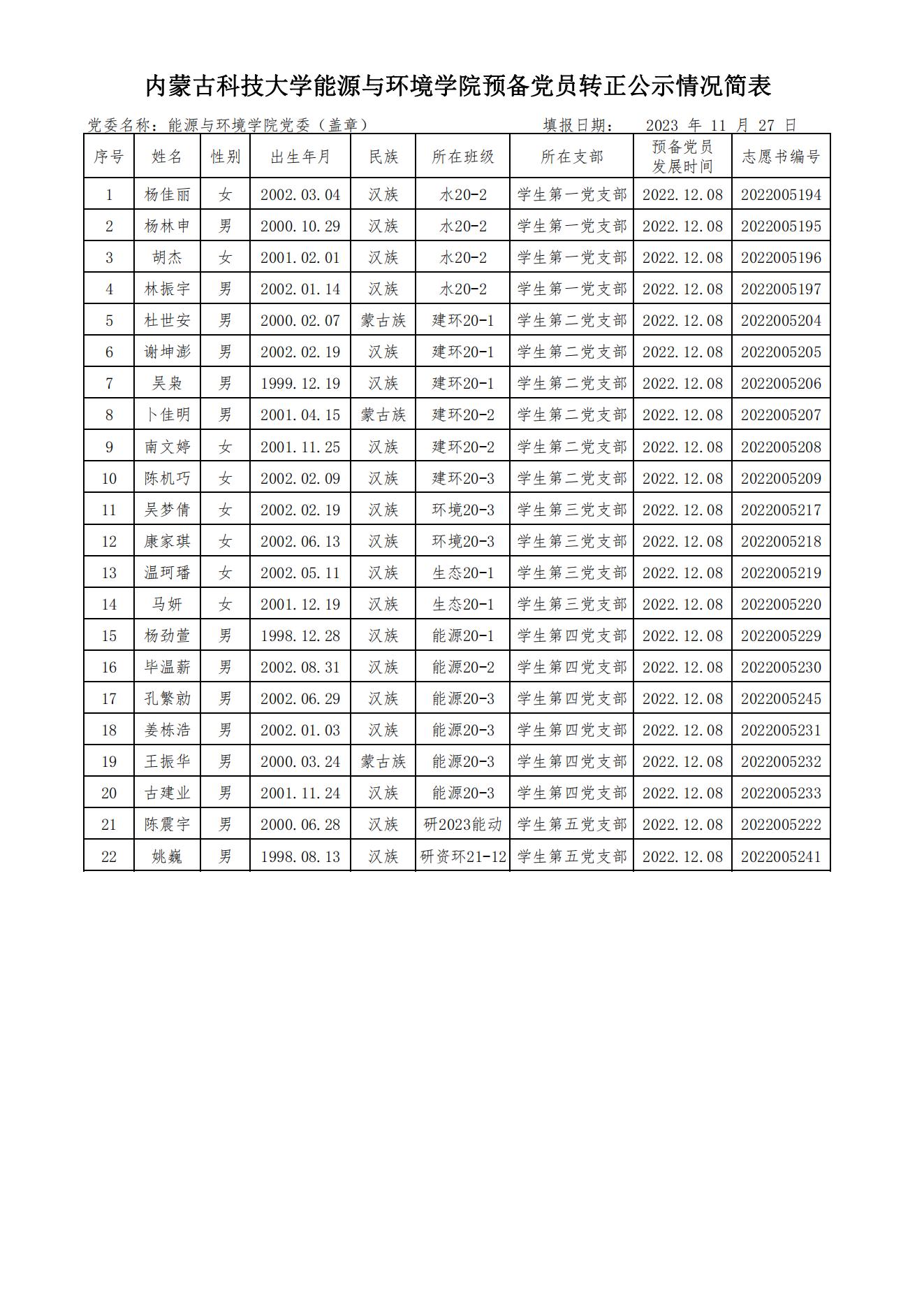 经过一年的教育和考察,杨佳丽、杨林申、胡杰、林振宇、杜世安、谢坤澎、吴枭、卜佳明、南文婷、陈机巧、吴梦倩、康家琪、温珂璠、马妍、杨劲萱、毕温薪、孔繁勍、姜栋浩、王振华、古建业、陈震宇、姚巍共二十二位同志预备期将满,学院各党支部拟在近期召开党员大会讨论他们的转正问题。为进一步增强发展党员工作的透明度,严格发展党员工作程序,根据《中国共产党章程》和《中国共产党发展党员工作细则》,现将近期拟转正的预备党员情况予以公示。