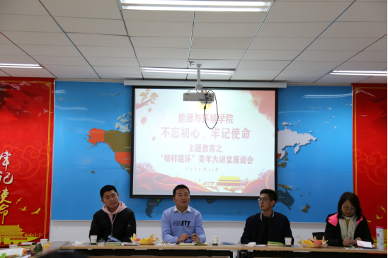 为深入贯彻习近平总书记在纪念五四运动100周年大会上的讲话和庆祝中华人民共和国成立70周年大会上的讲话精神,紧密结合“不忘初心、牢记使命”主题教育,激发广大青年学子实现中华民族伟大复兴的奋斗精神,11月30日,我院举办了“不忘初心、牢记使命”主题教育之“榜样能环”青年大讲堂系列活动。